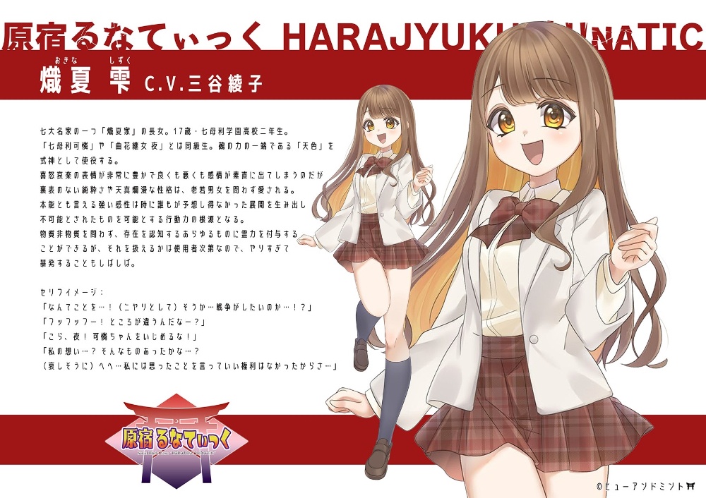 | 曲花継女 八千代(まがつめやちよ) C.V. 汐菜杏実 |